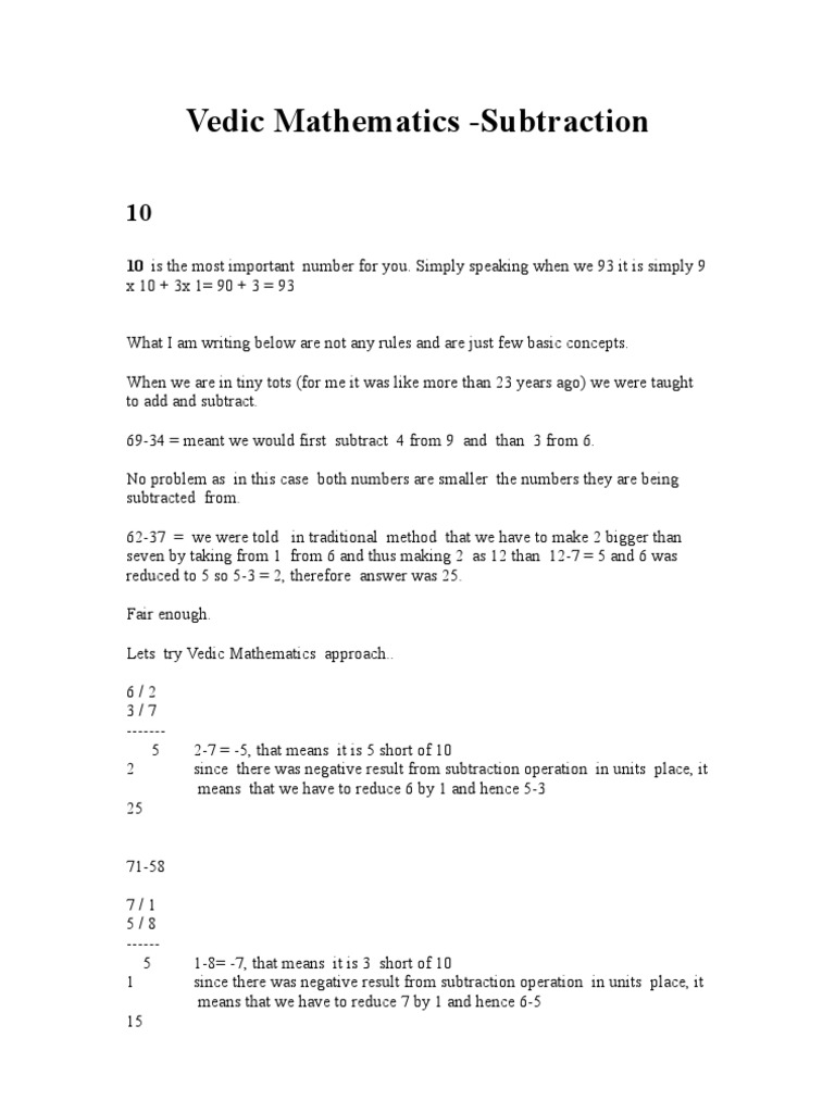 The best source for free subtraction worksheets. We are living in the age of tredemdous amount of competitions and vedic mathematics methods come to us as a boon for all the competitions. Vedic mathematics proffers subtracting tricks and guarantees in easy subtraction of digits. Want to help support the site and remove the ads? Vedic maths book was written by swami bharati krishna tirtha, who was an indian monk.
